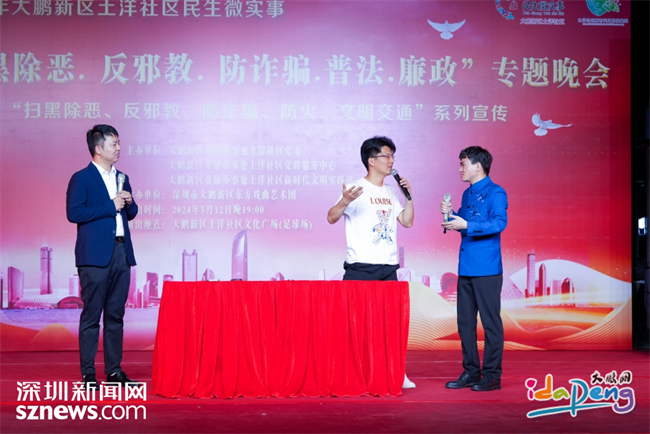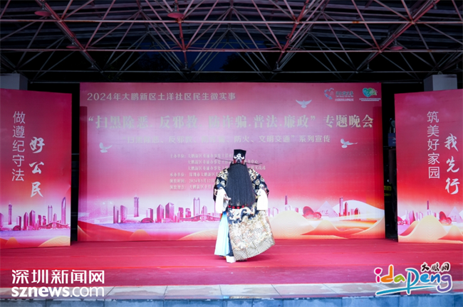 深圳新闻网2024年5月17日讯(记者 凌安儿 通讯员 周裕华 赖子悦)近日, 由大鹏新区葵涌办事处土洋社区党委、党群服务中心、新时代文明实践站主办,大鹏新区东方戏曲艺术团承办的“扫黑除恶•反邪教•防诈骗•普法•廉政”晚会在土洋社区文化广场举办。