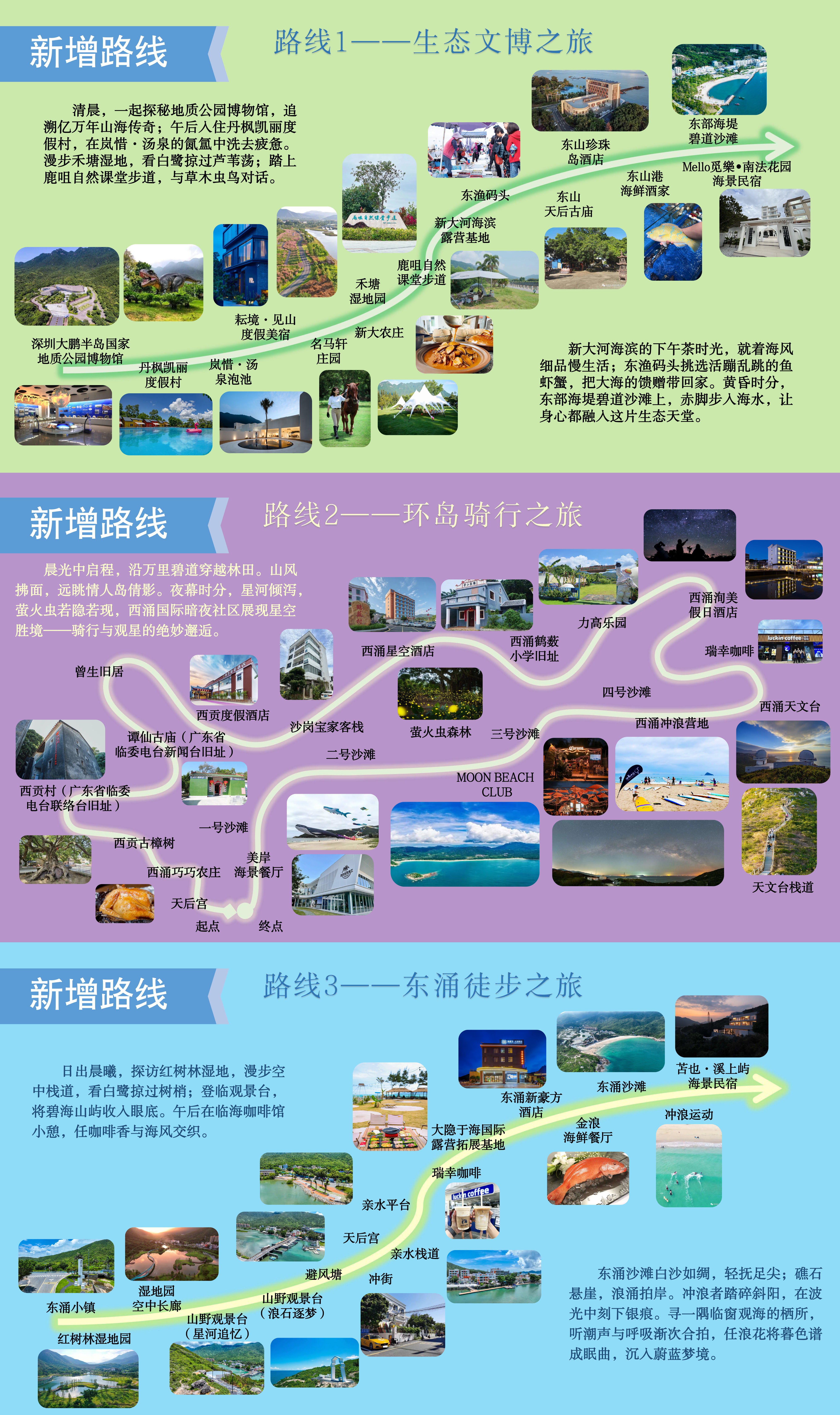今年,深圳南澳国际慢城推出环岛骑行、生态文博、东涌徒步3条慢游新路线,暑假期间,各片区更推出缤纷文旅活动和专属“吃住玩”优惠,惊喜不断,等你来“浪”!