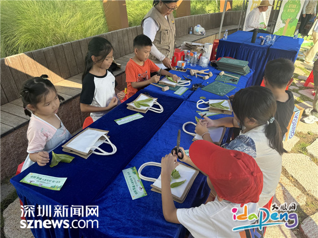 红树林亲水平台开展的儿童友好“‘森’活节”活动,通过趣味闯关游戏,孩子们在欢声笑语中掌握生态保护知识,现场还穿插了生动易懂的禁毒宣讲,为孩子的健康成长筑牢安全防线。“书香伴成长”山海亲子阅读活动则巧妙融合自然教育与阅读启蒙,亲子共读《神奇的种子》、共制植物书签,探寻生命成长的奥秘。家长赵女士直言:“把阅读和自然元素巧妙结合,孩子的参与热情特别高!”而“非遗润童心”活动同样备受好评。亲子家庭以“东涌山海”为创作灵感,共同体验调漆、漂染、题字等传统步骤,制作出一把把独具韵味的飘漆扇。家长陈女士深有感触:“难得和孩子一起动手体验非遗,不仅让我们真切感受到了传统技艺的独特魅力,也拉近了我和孩子之间的距离。”