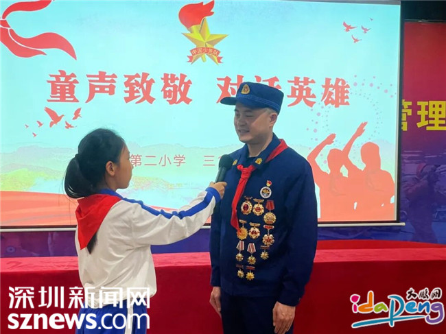来自大鹏第二小学的“中国少年先锋队 郑海周中队”师生代表们怀着崇敬与好奇的心情走进这里,与“全国劳动模范”、大鹏新区消防救援大队指战员郑海周面对面交流。