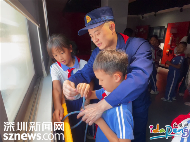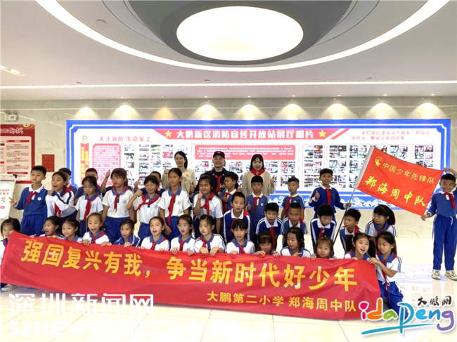 深圳新闻网2025年11月27日讯(记者 林宏松)近日,大鹏新区消防宣传开放站内彩旗飘扬、掌声阵阵。来自大鹏第二小学的“中国少年先锋队 郑海周中队”师生代表们怀着崇敬与好奇的心情走进这里,与“全国劳动模范”、大鹏新区消防救援大队指战员郑海周面对面交流,在沉浸式体验中学习消防技能,为消防宣传月增添了一抹朝气蓬勃的少年色彩。