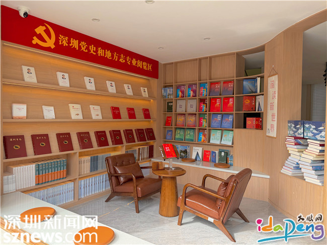 一楼设有图书角,陈列党史、地方史、地方志及年鉴等300余册书籍,助您深入了解深圳人文底蕴与大鹏地域风情。