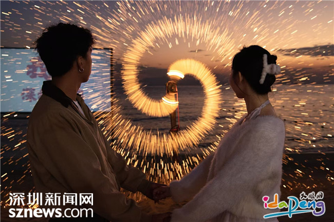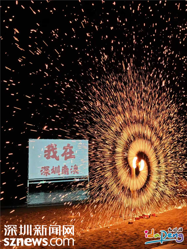 非遗光影表演:打铁花似星河落海,火壶/火龙舞轮轮番登场,暖光裹着海浪超浪漫。