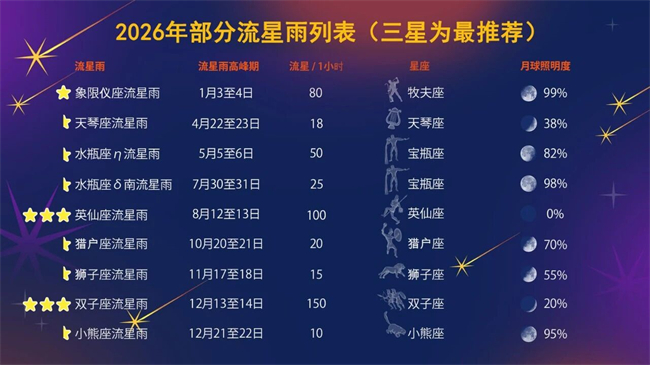 2026年部分流星雨列表(三星为最推荐)©Vito Technology, Inc.