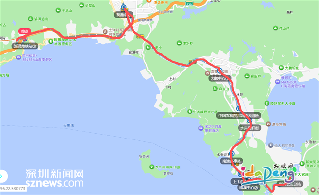 停靠站点:往溪涌地铁站方向:新大公交总站、南澳中心②、上下企沙、南澳办事处、水头海鲜街、中国农科院深圳基因组所、大鹏中心①、葵涌中心、溪涌地铁站②(A出口)往新大公交总站方向:溪涌地铁站①(C出口)、葵涌中心、大鹏中心①、中国农科院深圳基因组所、水头海鲜街、南澳办事处、上下企沙、南澳月亮湾、新大公交总站