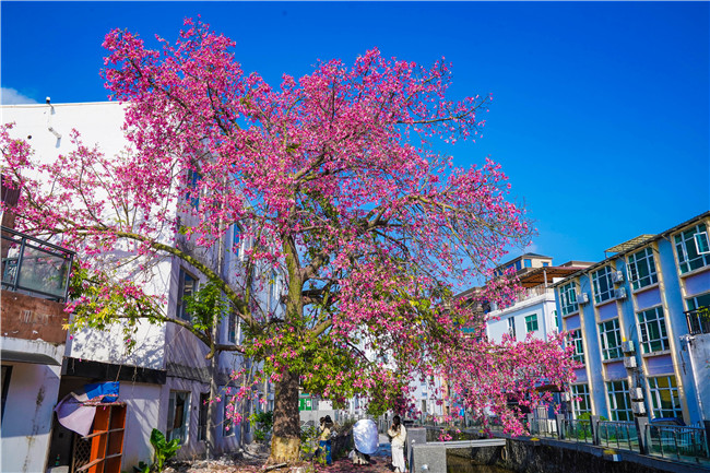 在大鹏较场尾,一场惊艳的粉色浪漫悄然启幕,较场尾异木棉进入盛花期。