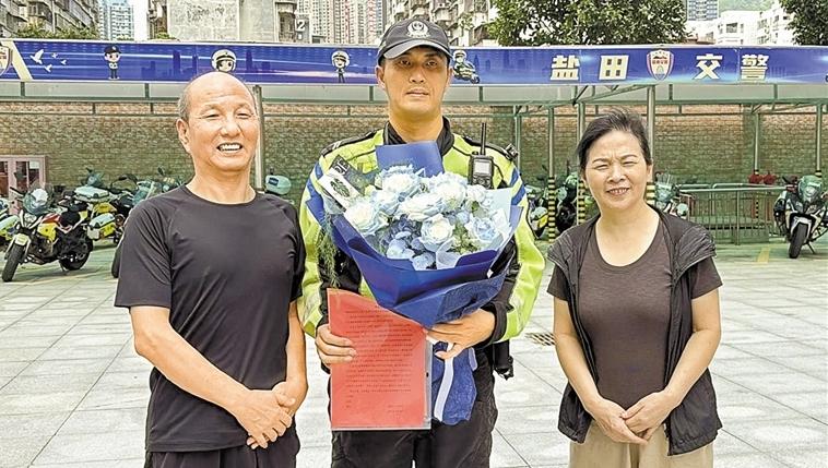 “医生说如果再晚一两分钟,人就没了。”盐田交警大队内,卫玲芳紧紧握着铁骑队员骆惠鹏的手,眼泪扑簌簌地落在感谢信上。