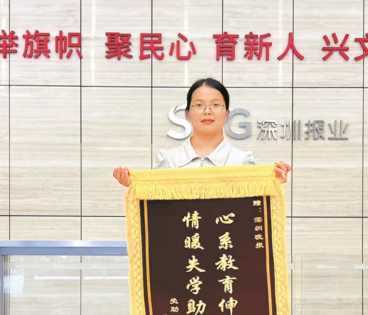 近日,一位年轻女孩手捧两面锦旗,走进深圳报业集团新媒体大厦大堂。