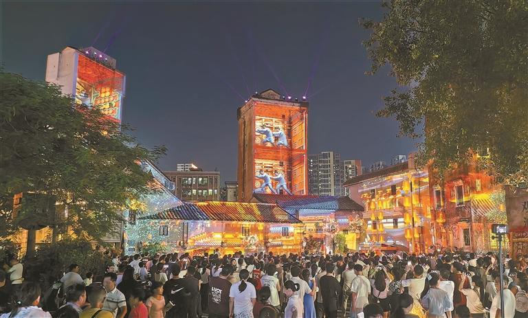 深圳龙华观澜古墟凭借特色灯光秀,成为市民游客热门打卡地。