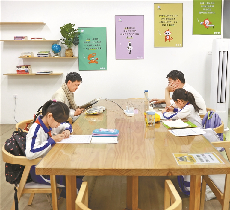 1月19日下午4点,梅林一村社区党群服务中心二楼的“拾光自习室”随着孩子们放学的脚步变得热闹起来。