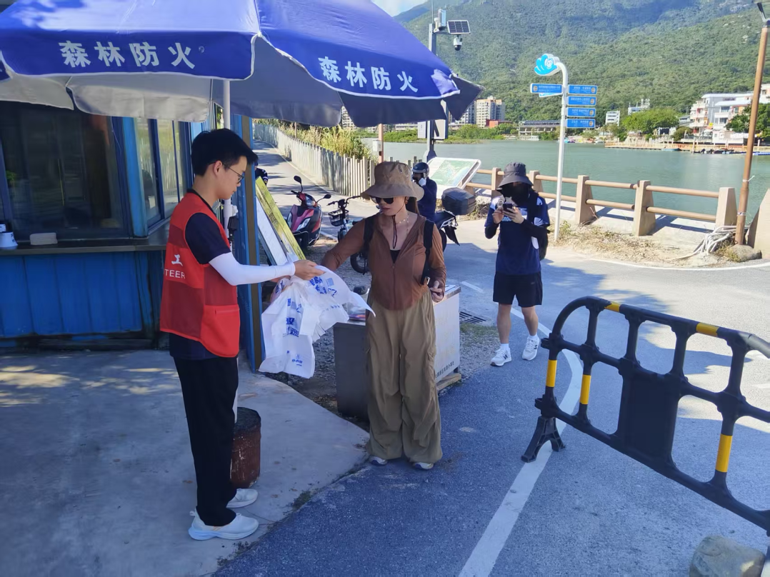 这个假期来大鹏挑战东西涌穿越线的“勇士”们在登山口除了检查防暑驱蚊能量补充装备还多了一个“文明装备必选项”!