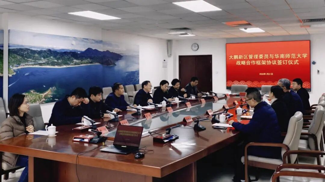1月21日,深圳市大鹏新区管理委员会与华南师范大学举行了战略合作框架协议签约仪式,深入推动实施高校赋能新区基础教育和产业高质量发展战略。