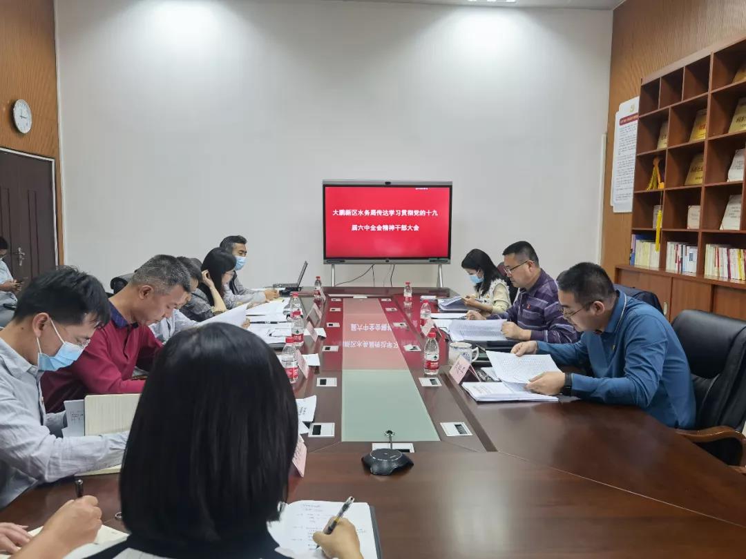 11月18日下午,大鹏新区水务局召开传达学习贯彻党的十九届六中全会精神干部大会,传达学习贯彻党的十九届六中全会精神和省、市、新区有关会议精神。