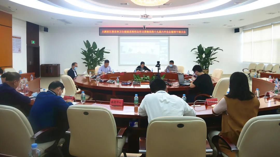 11月19日,大鹏新区教育卫生健康系统召开传达学习贯彻党的十九届六中全会精神干部会议,传达学习贯彻党的十九届六中全会精神和全省、全市、新区有关会议精神。